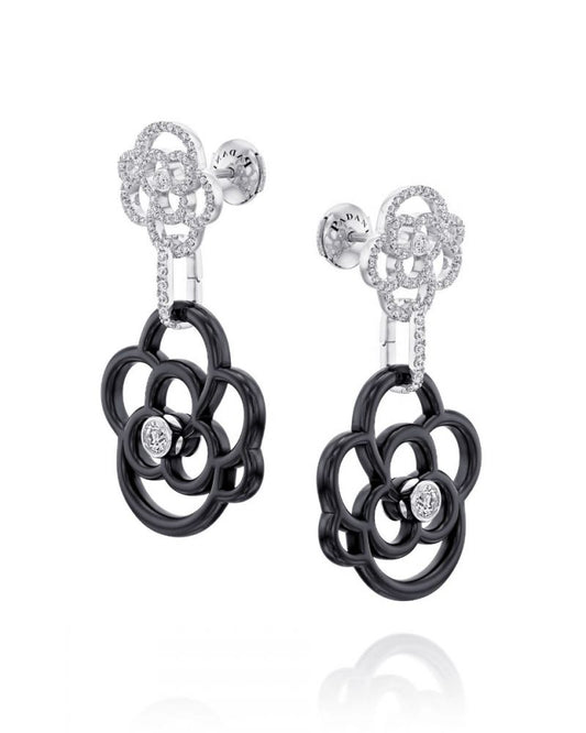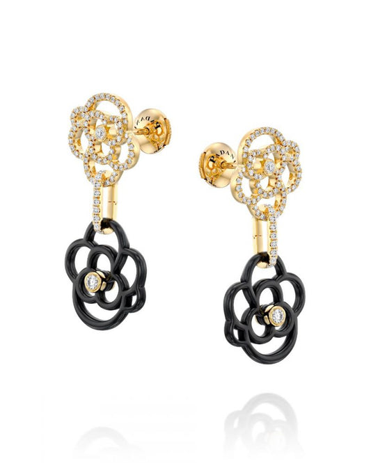 עגילי עננים זהב מוארכים משובצים יהלומים