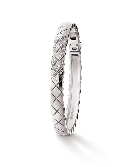 צמיד COCO CRUSH קשיח עבה בזהב לבן משובץ יהלומים