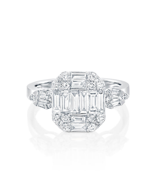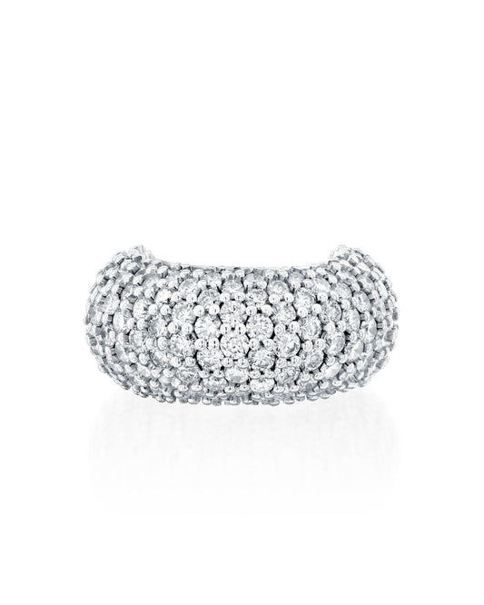 טבעת רחבה משובצת יהלומים בשיבוץ פווה בזהב לבן