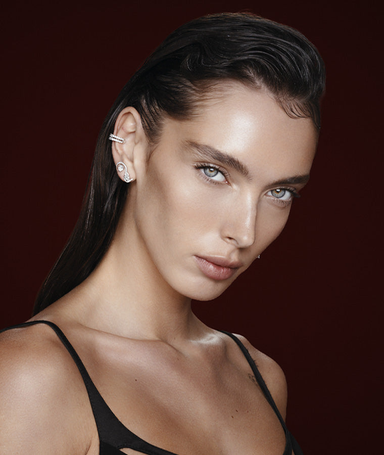עגילי חישוק יהלומים עגולים דגרדה בזהב לבן -S