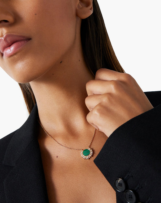 תליון SUNLIGHT משובץ יהלומים בשילוב אבן מלכיט
