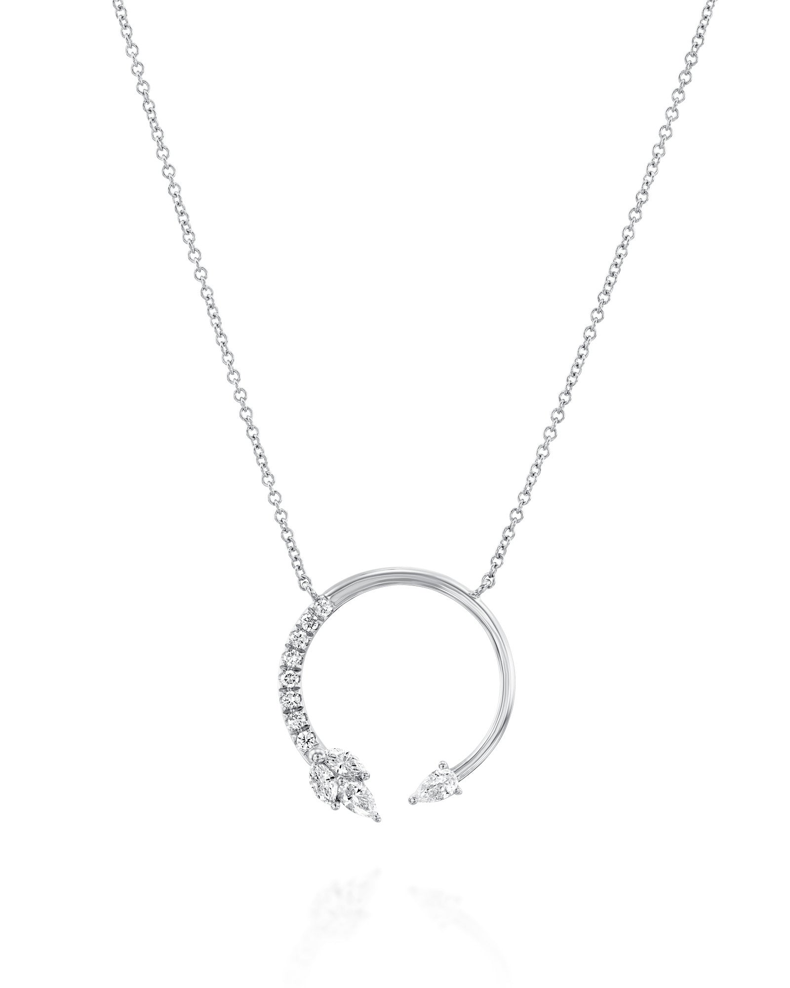שרשרת מלווין, עשויה זהב 18 קראט, עם חישוק פתוח משובץ בחצי יהלומים ויהלומים נוספים בקצוות.