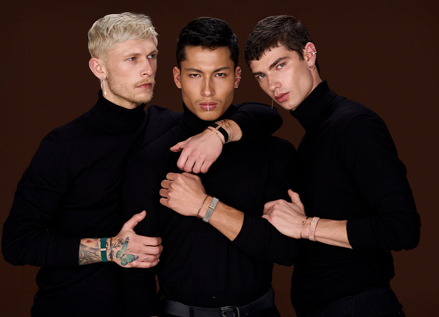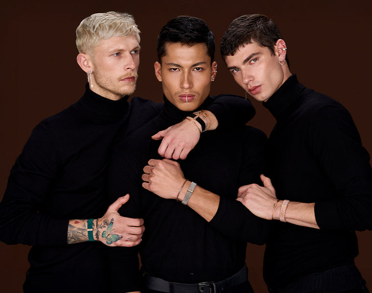 צמיד רוברטו דמליו דק מט משובץ שלושה פסי יהלומים שחורים