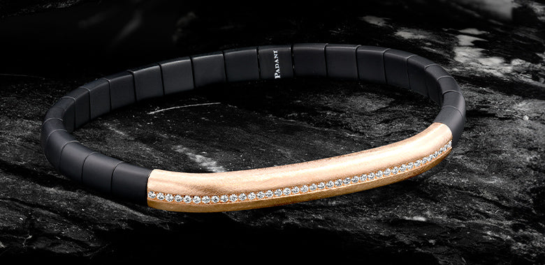 צמיד רוברטו דמליו דק מט משובץ שלושה פסי יהלומים שחורים