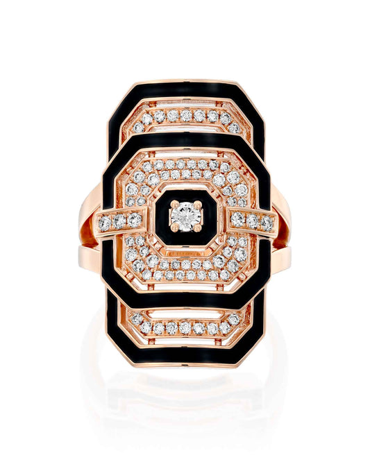 טבעת Statement בשילוב יהלומים אמייל שחור