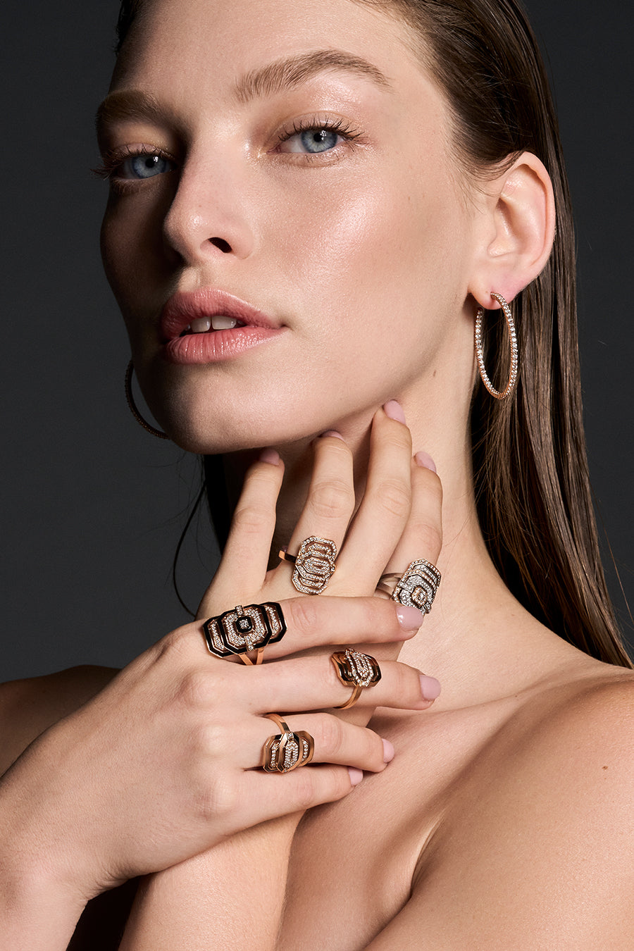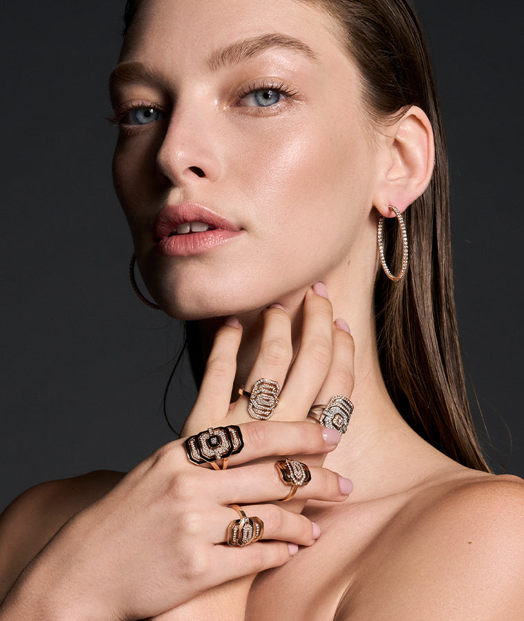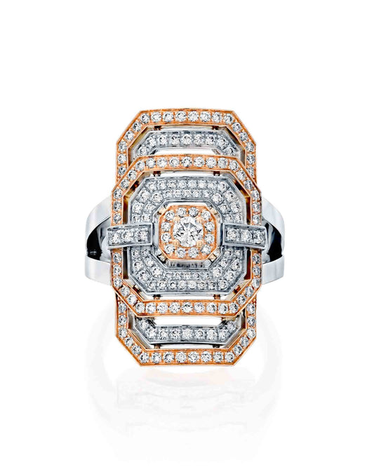 טבעת Statement מזהב אדום ויהלומים