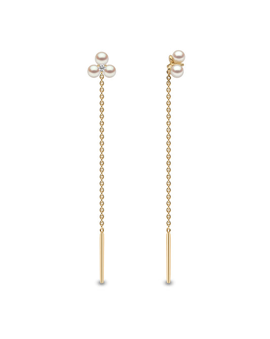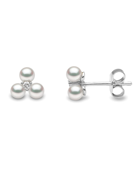 עגילים צמודים בשילוב שלוש פנינים ויהלום מרכזי