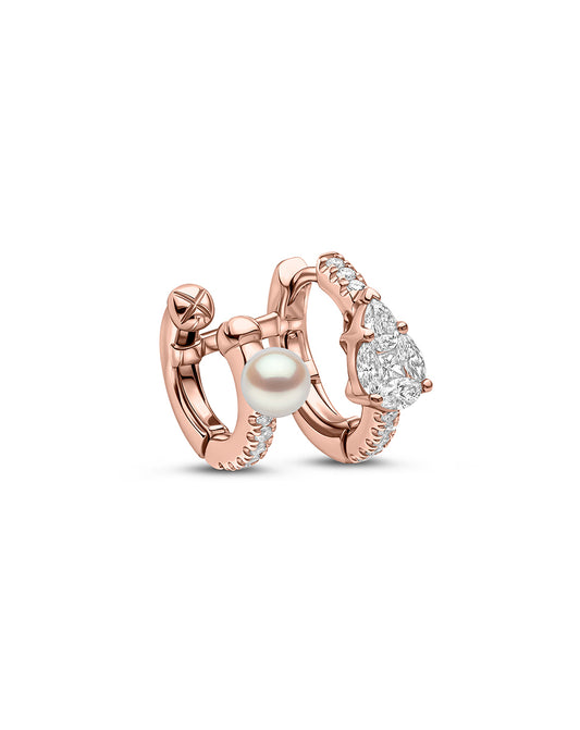 עגילי פנינה תלויים עם חישוק וזרוע יהלומים