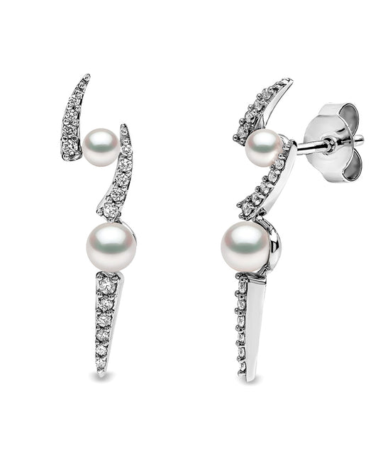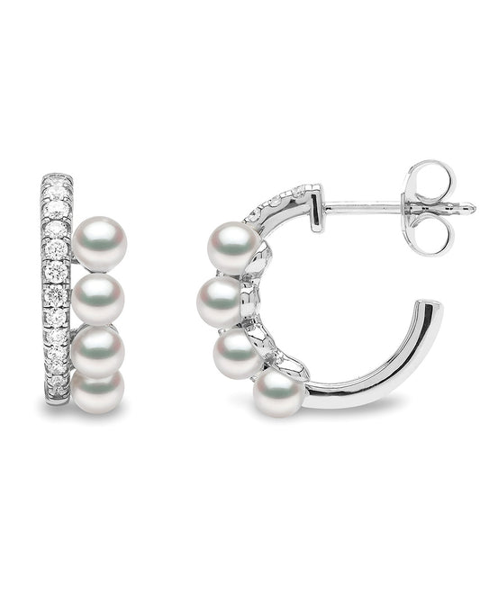 עגילי חישוק פנינים ויהלומים בעיצוב כפול
