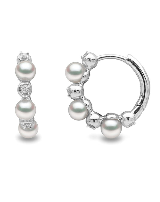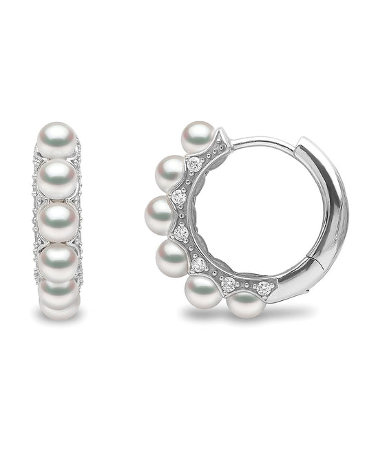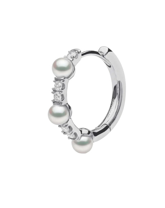 עגיל חישוק זהב לבן משובץ פנינים ויהלומים