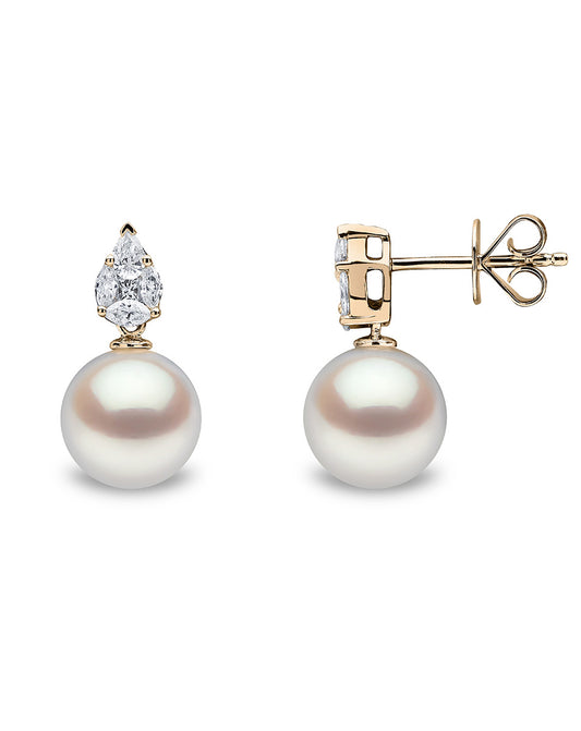 עגילי טיפה פנינה עם יהלומים- זהב צהוב