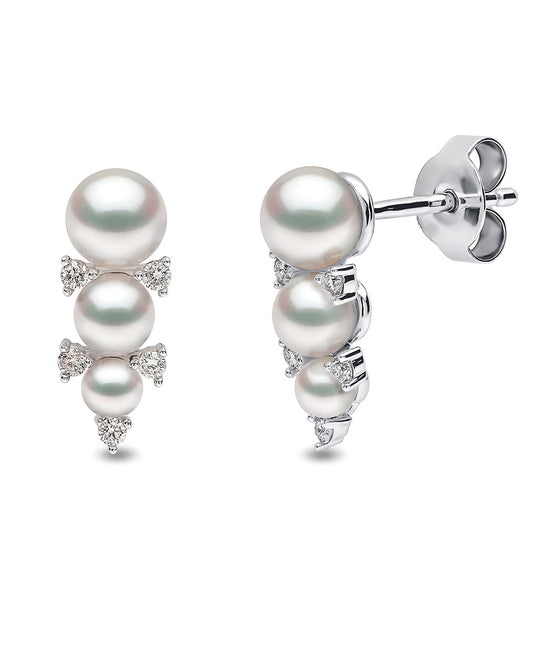 עגילי פנינים בעיצוב אנכי משובצים יהלומים