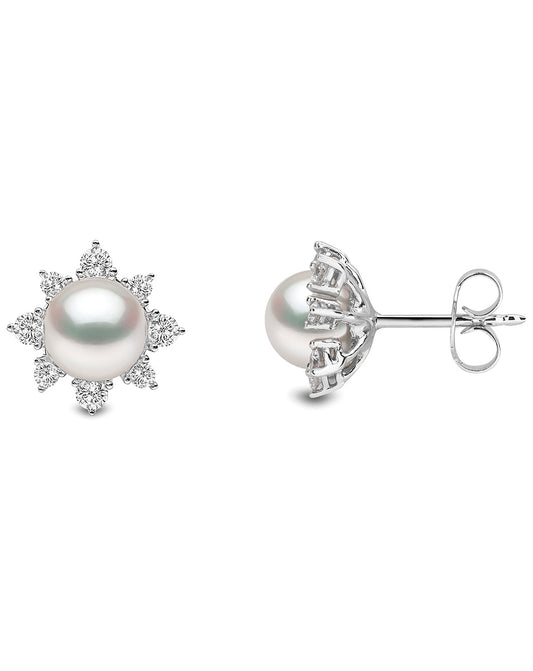 עגילים צמודים עם פנינה מרכזית וכתרי יהלומים