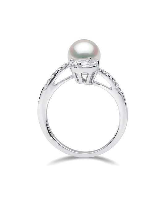 טבעת פתוחה בזהב לבן עם פנינה ויהלומים