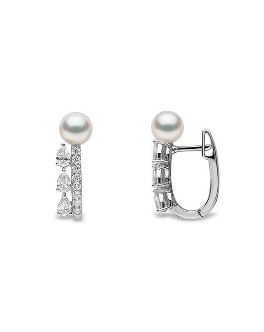 עגילים פנינים ומבנה זהב לבן משובץ יהלומים