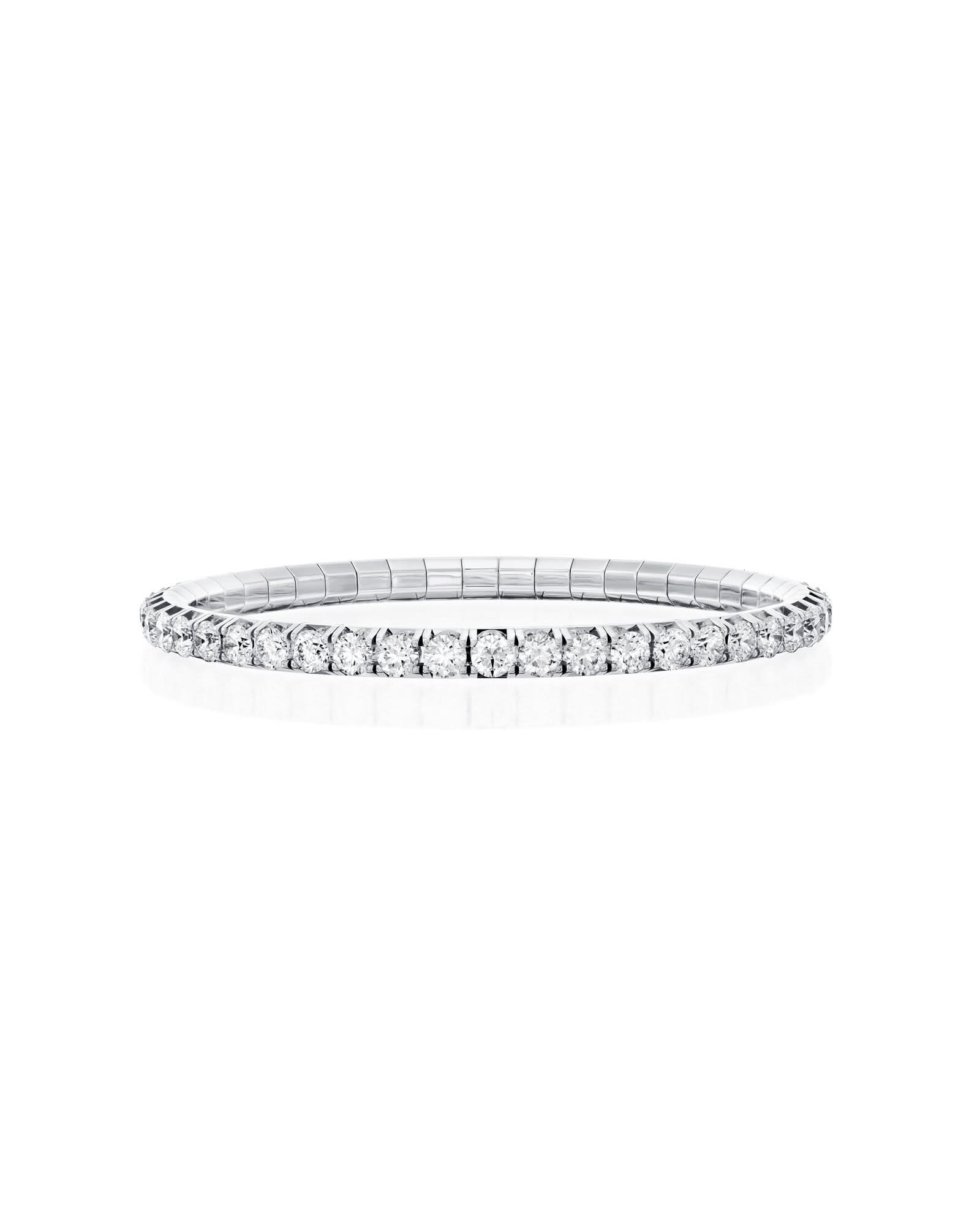 Flexiable tennis bracelet in 18k white gold, set with diamonds — 0.18 CT each.