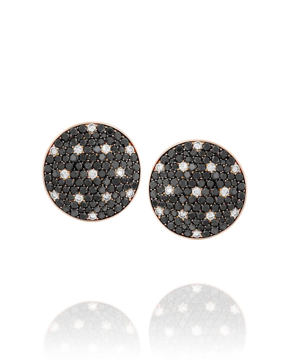 18K rose gold earrings set with natural diamonds and black diamonds.