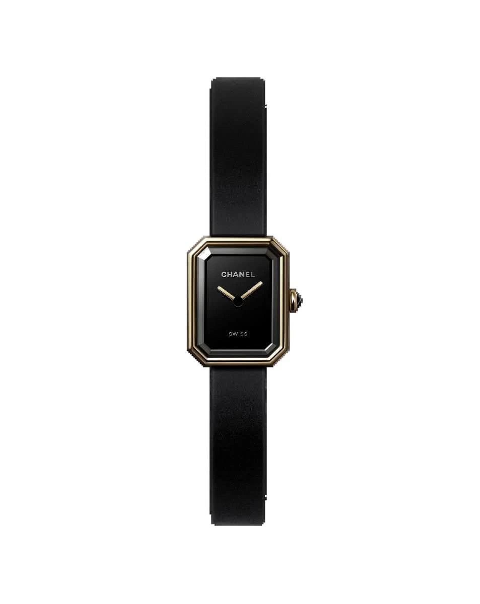 Première Ribbon Watch Yellow gold and titanium, black rubber strap with velvet touch, black-lacquered dial