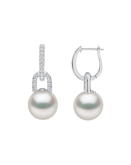Link Pearl Drop Earrings with Diamonds