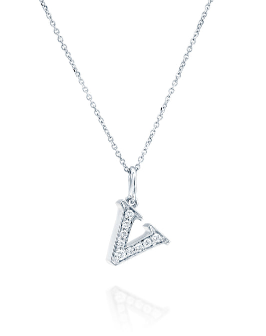 תליון אות V משובצת יהלומים