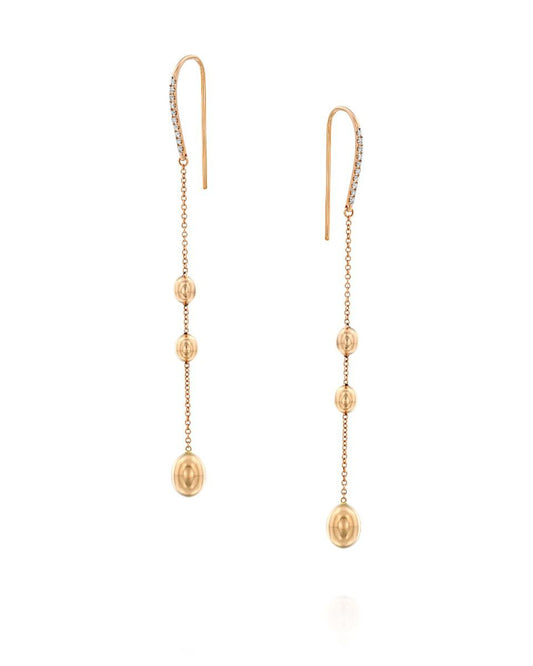 Rose Gold Drop Earrings with Beads and Diamond-Accented Chains