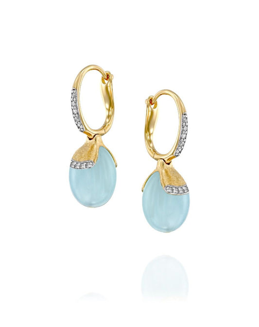 Yellow Gold Drop Earrings with Aquamarine and Pave Diamond Accents - SMALL
