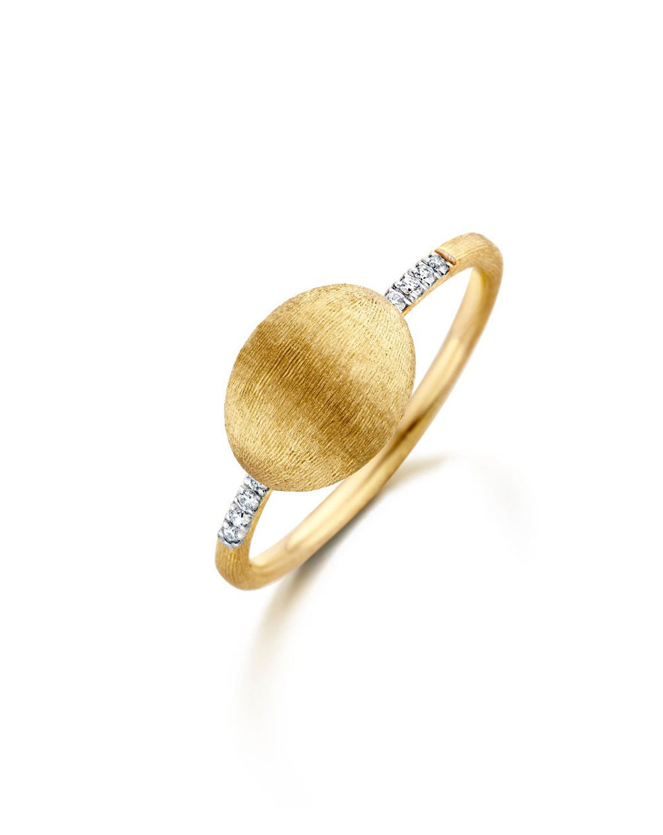 Nanis ring in yellow gold, featuring a central gold bead with diamond accents on both sides.