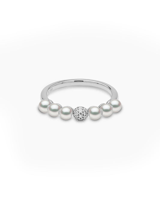 Two-Pearl Diamond-Accented Ring - Rose Gold
