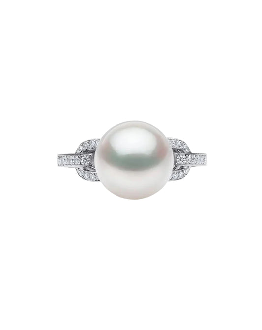 Two-Pearl Diamond-Accented Ring - Rose Gold