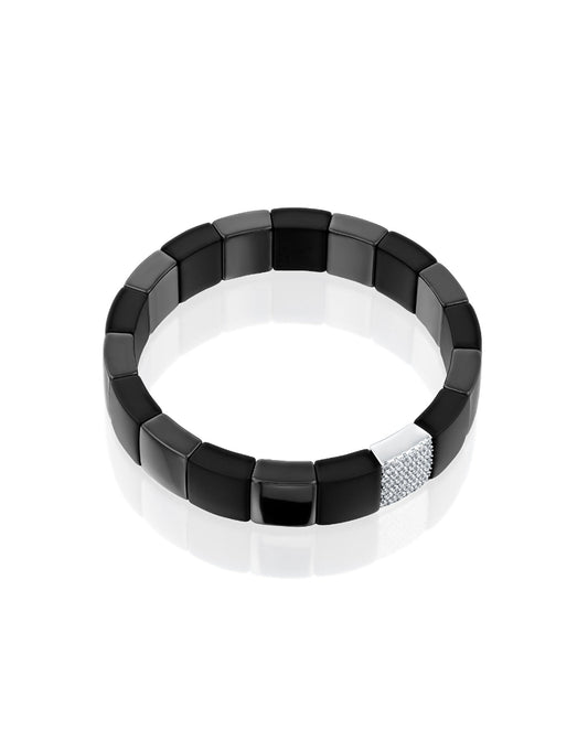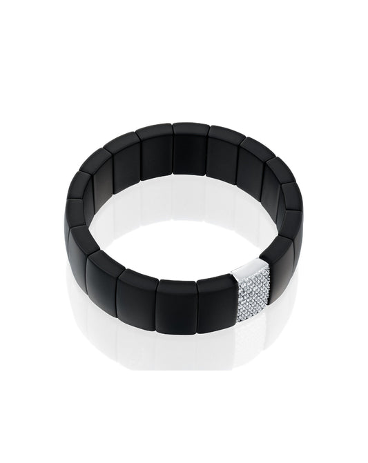 Wide Roberto Demeglio Bracelet Set with One Black Diamond Bar