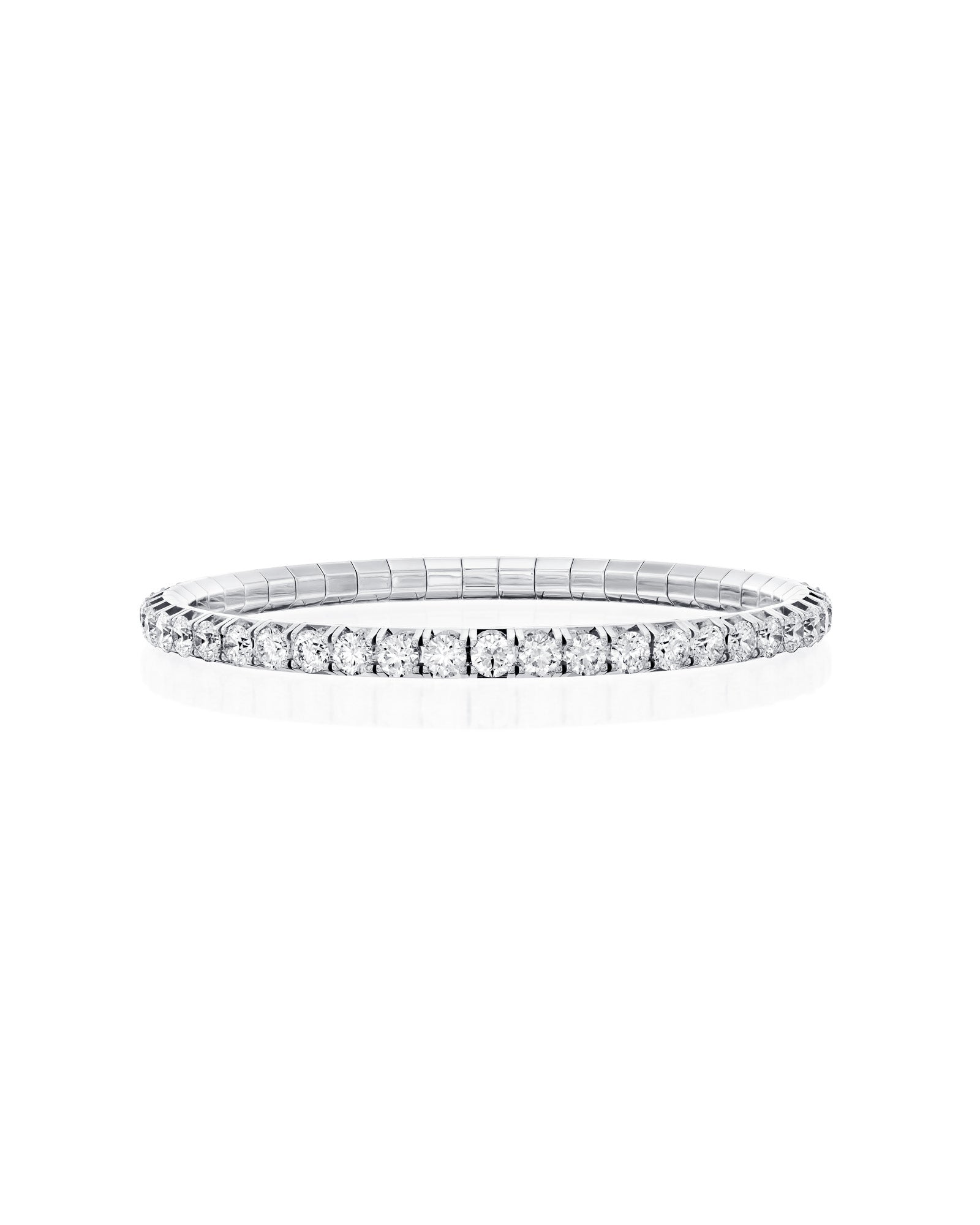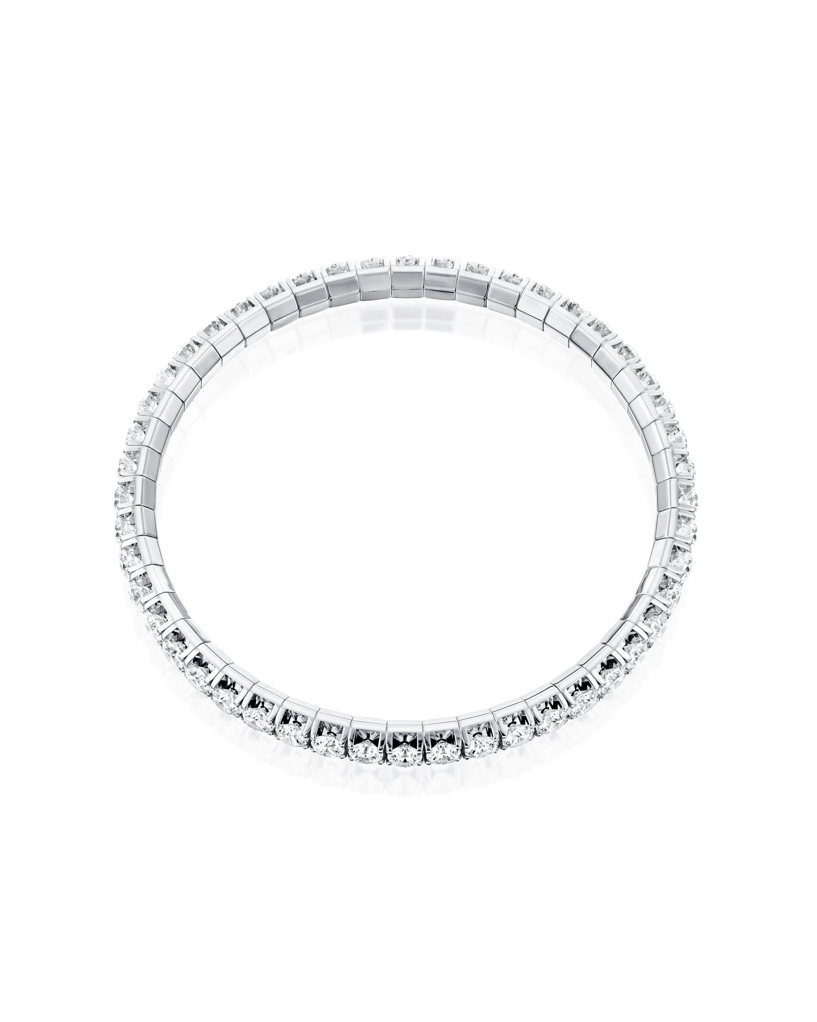 Flexiable tennis bracelet in 18k white gold, set with diamonds — 0.13 CT each.