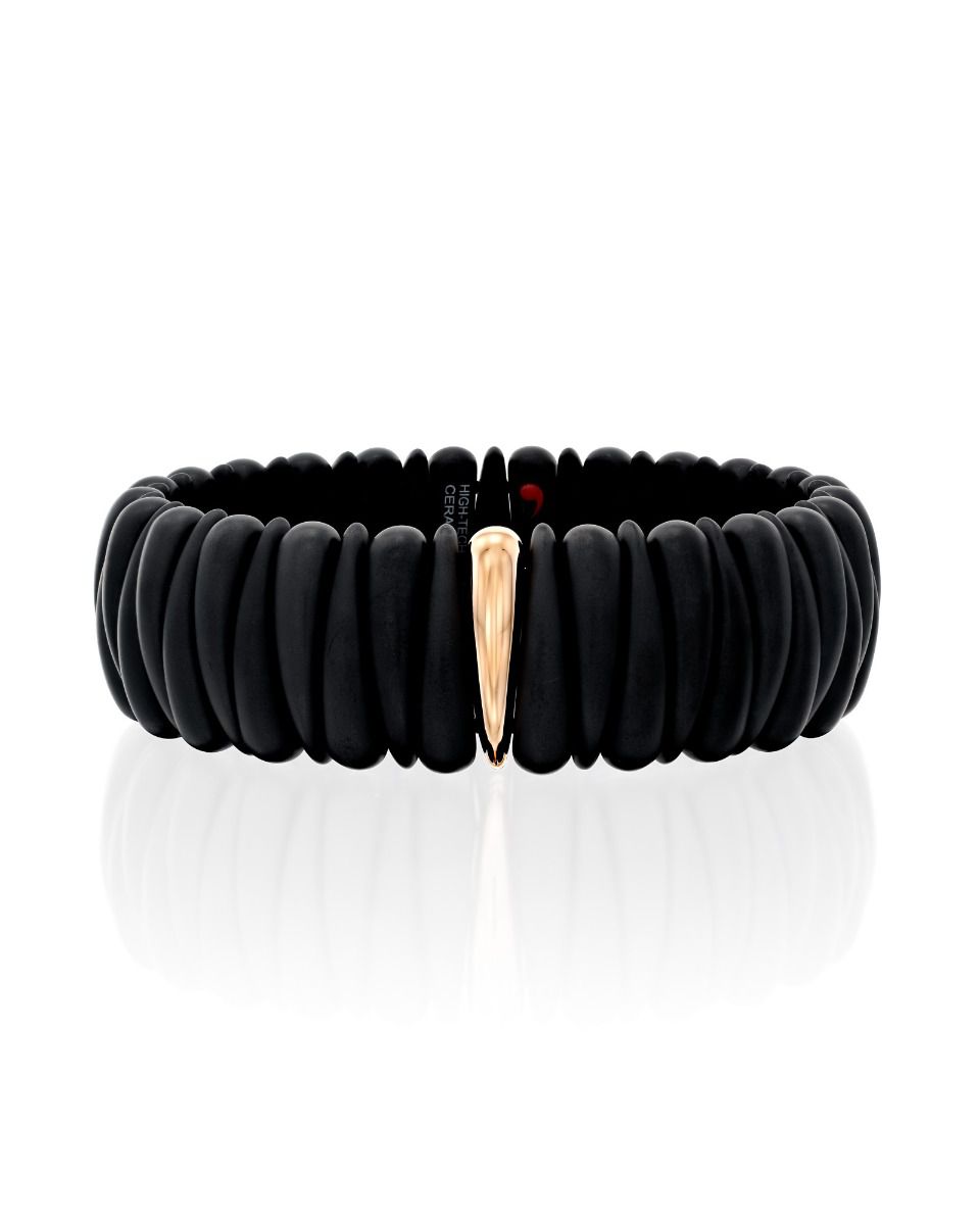 Satin black ceramic claw bracelet with one polished rose gold claw.