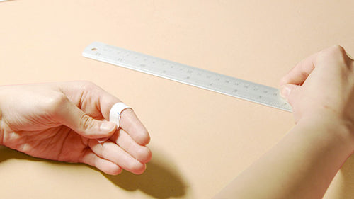 1. במידה ויש טבעת שמתאימה לאצבע הרצויה, מניחים אותה על הסרגל.